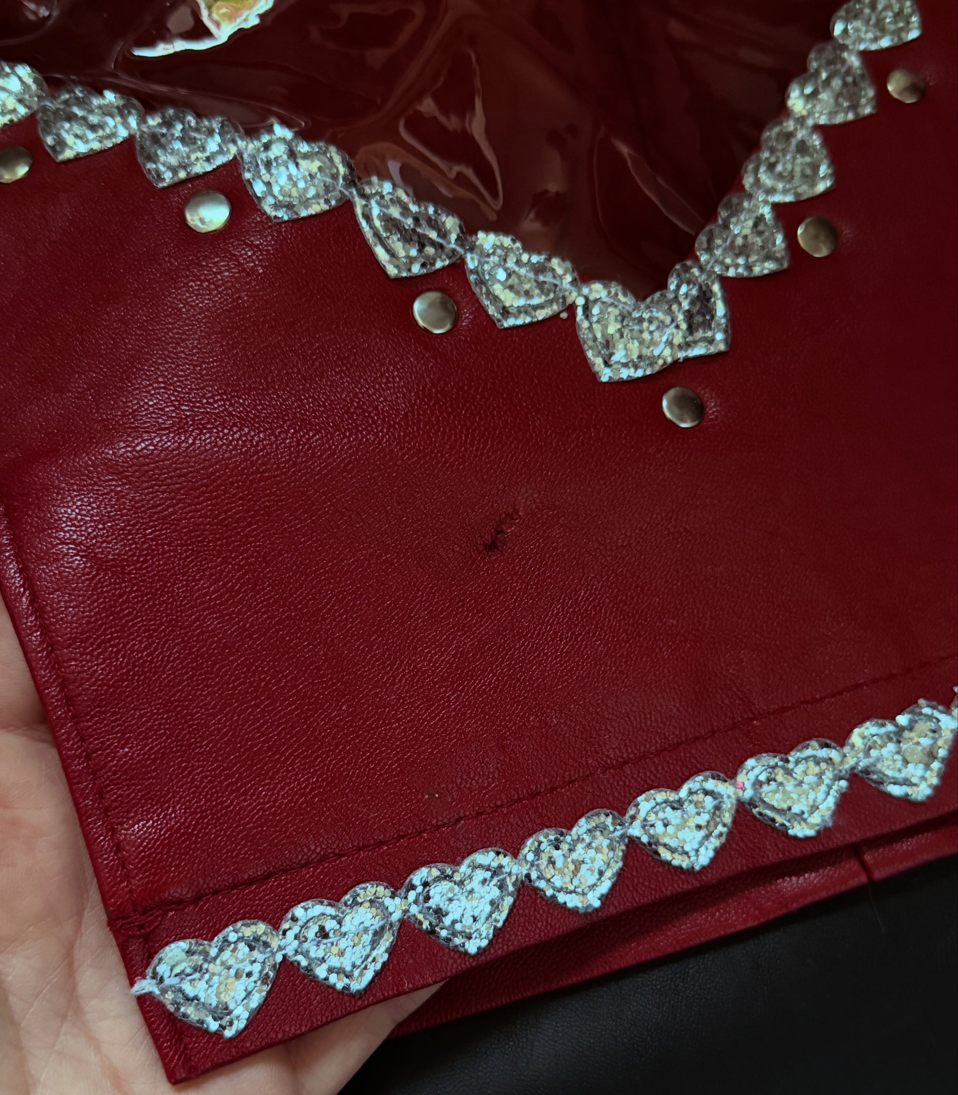 CLEAR PINK PVC HEART in the front • Lined with Silver Glitter Heats & Studs