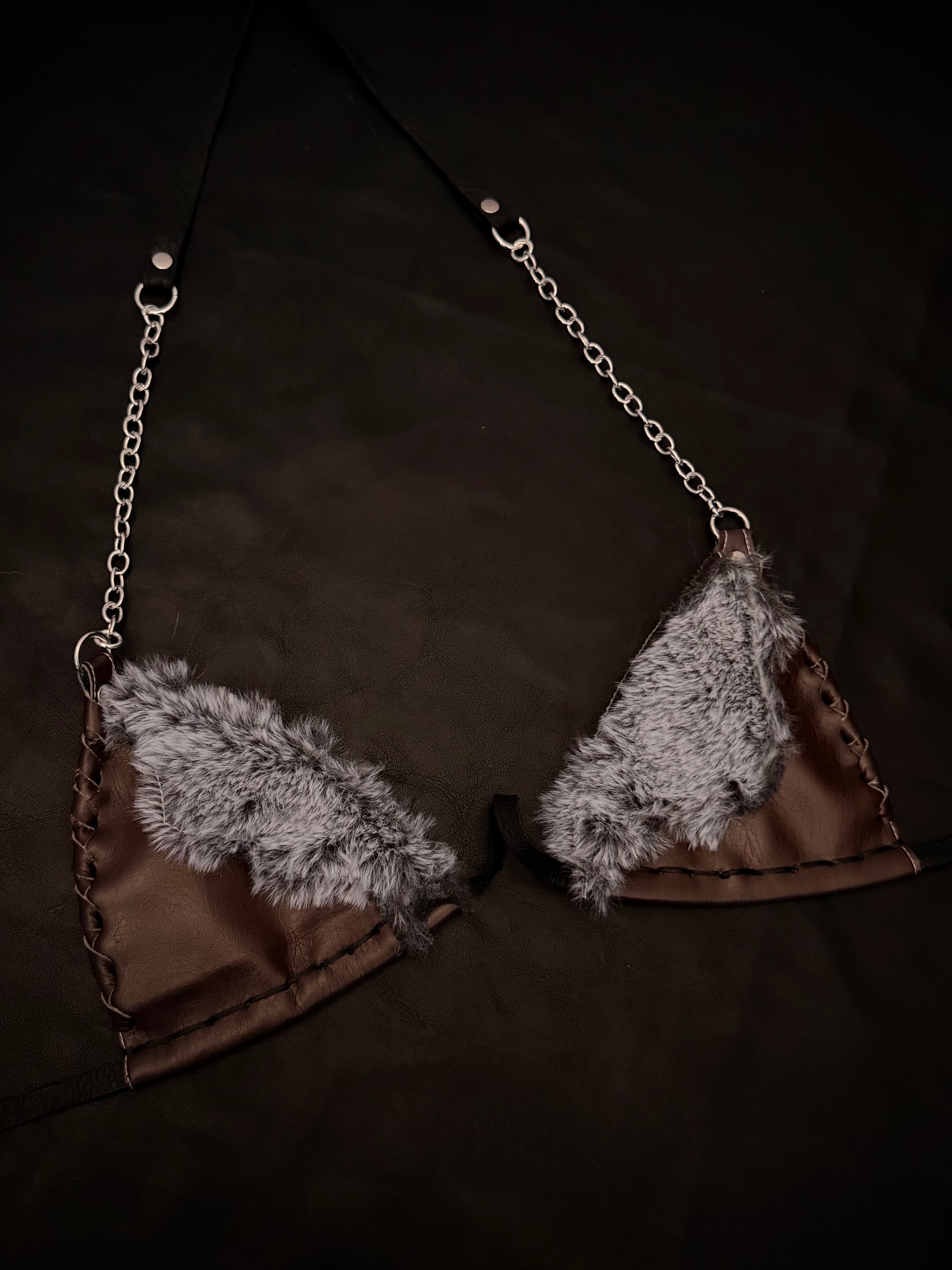 100% Handmade • Faux Fur • Dark Brown Faux Leather • Real Leather Straps